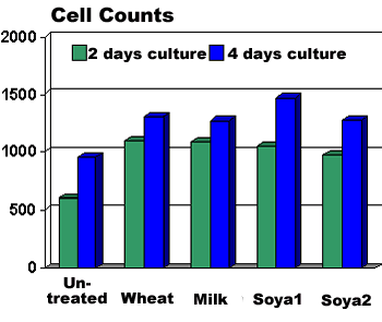 Fig 2a: Effect of various peptide extracts on cell counts of cutures of fibroblasts