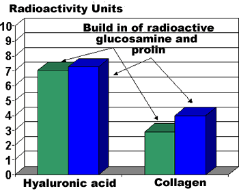 The stimulating effect of the cytokine on skin cells is also demonstrable in vivo. In a clinical study, 10 volunteers used a cream containing 2% of the cytokine on the zone around the corner of the eye in a half-side comparison with a placebo cream. After 2 weeks of daily treatment biopsies were taken in the course of a cosmetic operation and were biochemically analyzed to quantitatively determine collagen and glucosaminoglucan (GAG) content. After two weeks of treatment with the cream containing the cytokine the collagen content of the skin had increased by 29% and the GAG content by 20% (8). The in vitro results were therefore impressively corroborated.