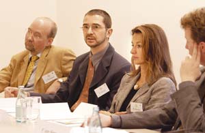 Professor Dr. Rolf Daniel (middle) takes the opinion that the end user as well should be informed about new dermopharmaceutic developments at an early stage. At a press conference in the framework of the 6th GD-Annual Meeting in Hamburg in March 2002 he presented the information brochure "Dry Skin" published by the GD to the public.