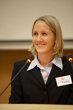 Neben Naturwissenschaftlern und Medizinern hatte die GD auch mehrere Juristen als Referenten zu ihrem 2. REACH-Symposium eingeladen. Antje Freriks vom Umweltbundesamt in Dessau sprach über die sozioökonomische Analyse, die im Rahmen der REACH-Verordnung sowohl im Zulassungs- als auch im Beschränkungsverfahren eine wichtige Rolle spielen wird.