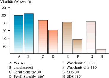 Unter diesen in vitro-Testbedingungen konnte gezeigt werden, daß Persil Sensitiv eine geringere Beeinflussung der Zellen induzierte im Vergleich zu Waschmittel B.